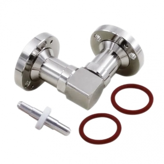 The EIA coaxial connectors are available in EIA 7/8”, EIA 1 5/8”, EIA 3 1/8”, EIA 4 1/2” and EIA 6 1/8” versions, all of which are suitable for RF applications. Designed to support cables with foam or air-dielectric, they consist of a main body, mounting flange with various bolt circles, and typically have interchangeable/removable center conductor “bullets”. Due to the flexibility of their design, EIA connectors are often not identified as male or female, as the connector can typically be configured as either. EIA connectors can be found in high power applications on directional couplers, coaxial cables, power amplifier outputs, and interconnects on communication towers and antennas. The most common sizes found in general test and measurement applications are the 1 5/8 and 7/8 EIA. There are a variety of adapters available to adapt the EIA series to some of the larger RF connectors such as the 7-16 and N type. This is a 7/8" EIA flange to 7/8" EIA flange adaptor, and is a right angle adapter.