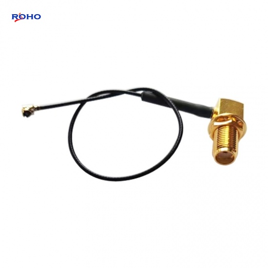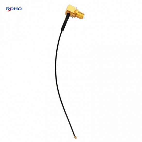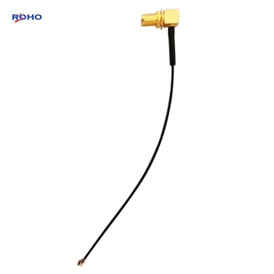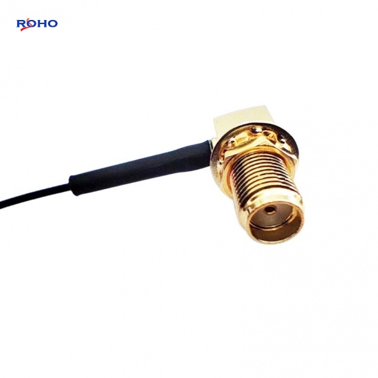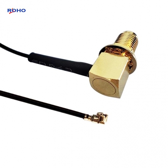 The SMA cable assembly can use corrugated, flexible, formable or semirigid coaxial cablesuch as 0.81mm, 1.13mm, 1.37mm, 1/4" Superflexible, LMR100, LMR-195, LMR200, LMR-240, LMR400, RG141, RG142, RG174, RG178, RG179, RG180, RG187, RG188, RG196, RG213, RG214, RG223, RG303, RG316, RG393, RG400, RG401, RG402, RG405, RG55, RG58, RG59, RG62, RG8, TFT-402 or Tinned 047 cable; the body of SMA to UFL cable assembly is right angle or straight connectors which is female to jack, female to plug, male to jack or male to plug gender. This SMA female to UFL plug cable assembly uses a 50ohm right angle SMA for connector 1 and a 50ohm straight UFL for connector 2, Cable is 50ohm 1.13mm.